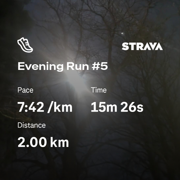 Monday 5th Jan I managed to complete my first 2k run! I appreciate all the running advice and donations I've received and I can really see the improvement in my running ability 🩵